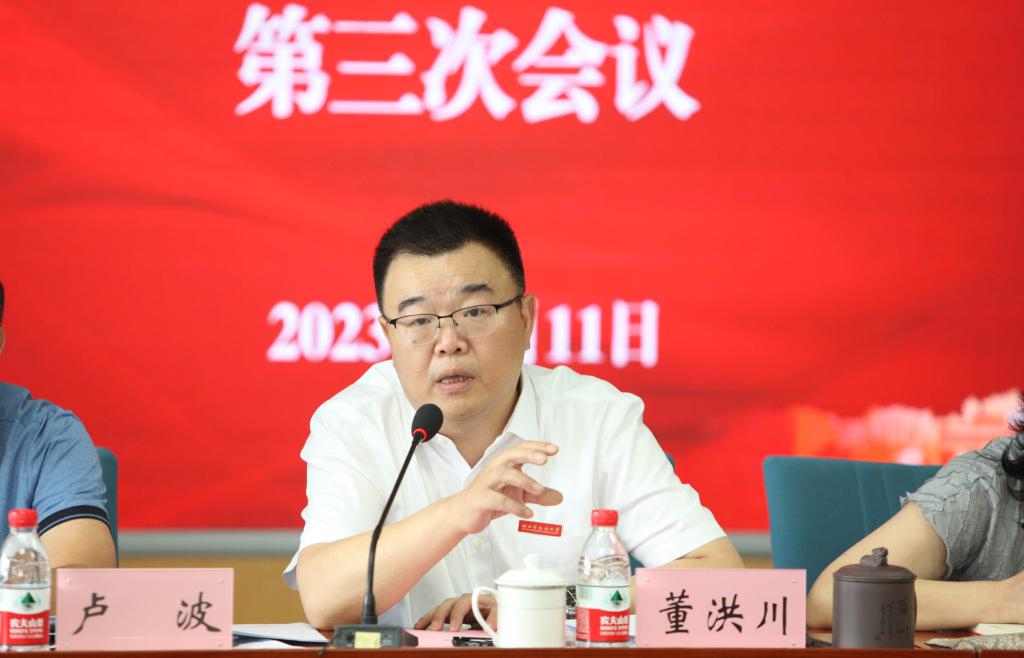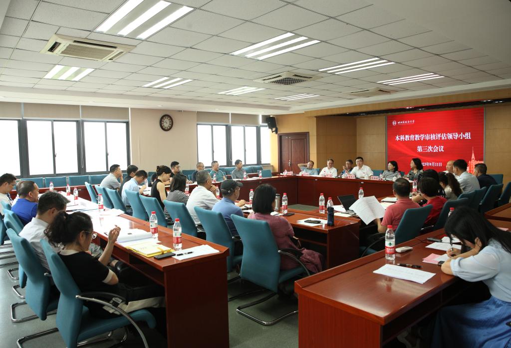 2023年9月11日上午,学校在立德楼C517会议室召开本科教育教学审核评估领导小组第三次全体会议,听取审核评估工作进展汇报,审议《自评报告》和《校长报告》、专家考察路线和特色项目、诊断评估方案等重要事项,推进学校审核评估准备工作。校长董洪川、党委副书记苟朝莉、副校长卢波、郑白玲、祝朝伟、严功军出席并讲话,各职能部门负责人、教育规划与评估院相关人员参会。会议由副校长王仁强主持。